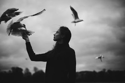 Dozens of birds swept past the balcony, vanishing into the winds beyond. None settled on the stone floor. They brushed against her hair and cloak as they flew, black wings grazing the red fabric, her pale face as still as the stones beneath her feet. She stood listening as the rustling leaves played a strange melody, as though summoning something. She waited.